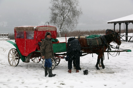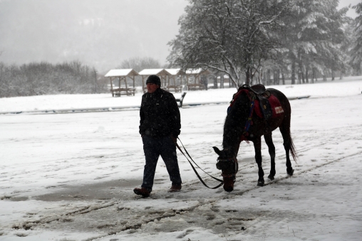 Öte yandan Abant Tabiat Parkı'nda zaman zaman etkili olan sis nedeniyle görüş mesafesi 35 metreye kadar düşüyor. Abant'a gelen tatilciler, yağan kar altında yürüyüş yaparak fotoğraf çektirdi ve faytonla dolaştı.