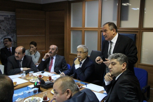 Çevre ve Şehircilik Bakanlığı Müsteşarı Prof. Dr. Mustafa Öztürk, Müsteşar Yardımcısı Mücahit Demirtaş, Bakanlık Genel Müdürleri ve İller Bankasından yetkililer Bolu Belediye Başkanı Alaaddin Yılmaz’ı ziyaret etti. Makamda gerçekleştirilen kısa ziyaretin ardından Müsteşar Öztürk ve beraberindeki heyet ile bir toplantı gerçekleştirildi. Bolu Belediyesi Encümen Salonu’nda gerçekleştirilen toplantıda Bolu Belediye Başkanı Alaaddin Yılmaz, Bolu Belediyesi tarafından hayata geçirilecek olan Karadere Suları, Pazaryeri Projesi, Atık Su Arıtma Tesisi 2. Kademe Projesi, Tavuk Atıklarının Enerjiye Dönüştürülmesi Projesi ve daha birçok Çevre ve Şehircilik Bakanlığı’nın çalışma alanındaki çevre projeleri hakkında Bakanlık Müsteşarı Prof. Dr. Mustafa Öztürk’e sunum yaparak destek istedi.