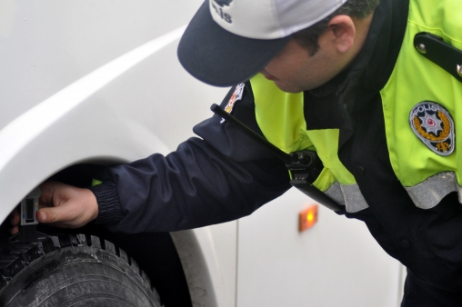 Bolu İl Emniyet Müdürlüğü Trafik Tescil ve Denetleme Şube Müdür Vekili Güray Aksüt, uygulamada lastik diş boyunun uygun olup olmadığına baktıklarını söyleyerek, “Sizde biliyorsunuz ki 4925 sayılı kanuna göre 1 Aralık ve 1 Nisan tarihleri arasında kış lastiği kullanma zorunluluğu var. Biz bu yaptığımız denetimlerde kış lastiğinin özelliğine bakıyoruz. Lastiğin üzerindeki M+S harflerinin olup olmadığına bakıyoruz. Lastik diş derinliğinin de 4 mm olup olmadığını kontrol ediyoruz” dedi.