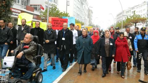 3 Aralık Dünya Engelliler Günü nedeniyle Anıtpark’ta bir araya gelen engelliler, törenin ardından cadde boyunca bando eşliğinde yürüyüş yaptılar. Caddedeki vatandaşların da desteğini alan engellilerin Belediye Bandosu eşliğindeki yürüyüşlerine öğrenciler de katıldı.