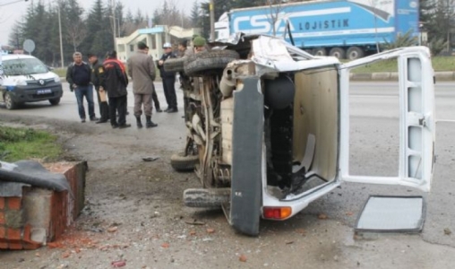 Kaza, D-100 Karayolu Karacaağaç mevkisinde meydana geldi. Edinilen bilgiye göre, Serkan Erkoç yönetimindeki 14 AT 569 plakalı otomobil Çaydurt istikametine doğru seyrediyordu. Karacaağaç mevkisine geldiğinde bir jandarma aracı sollamaya geçti. Daha sonra jandarma aracı aniden benzinliğe giriş yapmak istedi. Bu sırada önüne kıran jandarma aracına çarpmak istemeyen sürücü direksiyon hakimiyetini kaybetti. Benzinlik girişindeki betona çarpan araç daha sonra yan yattı. Kazada şans eseri sürücü ve yanındaki bir kişi yara almadan kurtuldu. Polis kazayla ilgili inceleme başlattı.
