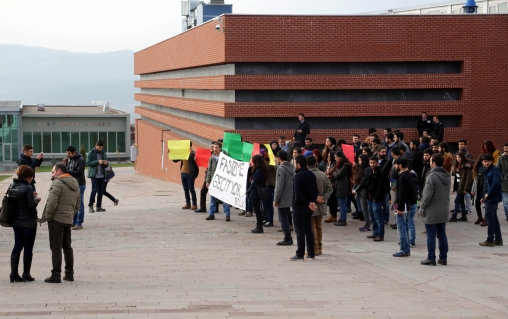 Borozanlar Mahallesi'nde iki arkadaşlarının darp edildiğini iddia eden bir grup öğrenci, AİBÜ Eğitim Fakültesi kantini önünde toplandı.