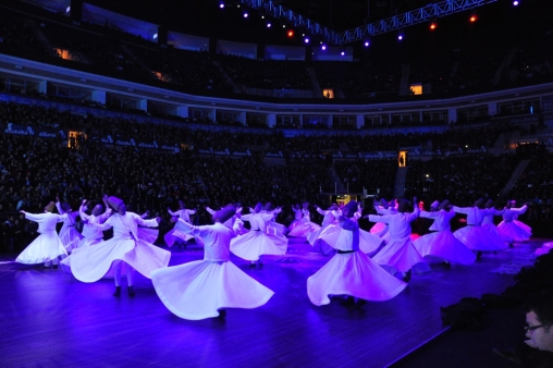 Yurt dışından gelen önemli isimlerin sahnelerini hazırlayan ekip bu gece için iş başında. İstanbul’daki Şeb-i Arus töreninde; 7 TIR ekipman, 500 kişilik ekip, 500 metre truss, 350 ışık robotu, alan içi görüntü yansıtma sistemi, 105 metre led teknik ekipman kullanılacak. Bu gece için zemini semazenler için özel olarak yeniden döşenen, ses ve ışık sistemi ile birlikte bütün alanları gecenin havasına uygun şekilde hazırlanan Sinan Erdem Spor Salonu’nda, İstanbul’un o eşsiz silueti bir tennurenin eteğinde gökyüzüyle buluşacak.