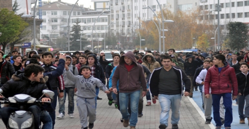 Büyük Kökez bölgesinden geri dönen öğrenciler koşarak yeniden İzzet Baysal Caddesi’ne ulaştı. Sloganlar ve torpiller atarak caddeyi birbirine katan öğrenciler, Hükümet Meydanı’na kadar polisi peşinde koşturdu. 250 öğrenci okul basmaya yeltenirken, Bolu İzzet Baysal Mesleki ve Teknik Anadolu Lisesi öğretmenlerinin ve okul müdürlerinin öğrencilerine müdahale etmemesi eğitimdeki seviyesizliği gözler önüne serdi. Bolu Emniyet Müdürlüğü’ne bağlı polis ekipleri, iki okul önünde de nöbet tutarak öğrencilerin okullarına girmesi için çaba sarf etti. Emniyetin zamanında müdahalesiyle büyük bir kavga önlendi.