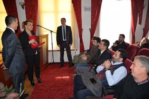 1993’ten bu yana Bolu Valiliği Basın ve Halkla İlişkiler Müdürü olarak görev yaptığını ve Bolu basını ile iyi ilişkiler kurduklarını dile getiren Bolu Valiliği Basın ve Halkla İlişkiler Müdürü Nurhan Yılmaz, “Çalışma arkadaşlarımla birlikte bugüne kadar hiçbir sorun yaşanmadan bu görevi yerine getirdik. Yine gazeteci arkadaşlarımızla birlikte çalışacağız. Ancak ilan almak için geldikleri için daha sık görüşme imkanı buluyorduk. Ben ve birimde çalışan ekip arkadaşlarım bu görevi uzun yıllar sorunsuz yerine getirdiğimiz için mutluyuz” dedi. Nurhan Yılmaz’a plaketini BİK İlan Hizmetleri Müdür Vekili İdris Çam verdi.