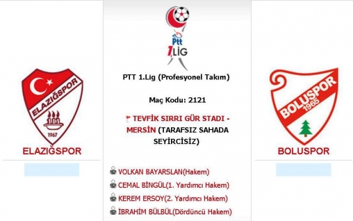 Elazığspor'un cezası nedeni ile tarafsız ve seyircisiz oynanacak olan Elazığspor-Boluspor karşılaşmasının yeri belli oldu. PTT 1.Lig'in 14. Haftasında oynayacağımız Elazığspor maçı,21 Aralık Pazar, saat 13:30 'da Mersin Tevfik Sırrı Gür Stadyumu'nda oynanacak. Elazığspor'un seyircisiz oynama cezası yüzünden maça yalnızca BOLUSPOR taraftarımız giriş yapabilecek. Böylece Boluspor takımı mücadeleyi taraftar avantajı ile oynayacak.