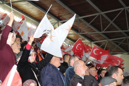 2015 Haziran’ında bir kez daha Ak Parti demeye hazır mıyız? Türkiye ile birlikte Bolu’nun da düzelmesi için semt semt köylere kadar giderek 2015 seçimlerinde kazanmaya hazır mıyız? Biz de Bolu’ya hizmet etmeye hazırız. 10 yıl bitmeyen Bolu Dağı Tünelinin, Ak Parti döneminde 4 yılda nasıl bittiğini Bolu bilir. Ak parti söz verdi mi dağlar dayanmaz, engeller barikatlar karşımızda duramaz. 12 yılda 5.5 milyarlık yatırım yapıldı. Bolu'da 2002'de toplam ihracat 7 milyon dolardı. Şimdi 2014'de 106 milyon dolar, 20 kat. Geçen sene içinde Bolu'dan en az yapılan ihracat ayda 13 milyondu, 2002'deki toplam ihracatın 2 misli bir ayda. İşte bütün ülkemizle birlikte Bolu da bereketlendi. Bolu'da zenginleşti, daha da zenginleşecek. Üniversitemiz büyüyor. Bolu'da önümüzdeki dönem ki ulaşım hatlarının merkezinde. 2 saatte 25 milyona ulaşabilen bir coğrafyada Bolu. İstanbul ve Ankara'nın merkez noktası. Bolu bundan istifade edecek. Her şekliyle istifade edecek. Gelirken birkaç talimat verdim. Bir hediye olarak Bolulularla paylaşmak istiyorum. Birincisi Rabbimizin lütuf şeklidir Bolu, nimet şeklidir. Bu kadar güzel doğa hiçbir yerde yok. Akademik hayatta da, hatta evlendiğimde ilk tatilimi de Bolu'da yapmıştım. O zamandan beri Bolu bizim gönlümüzde. Hala yakın dostlarımız var. Her birini şükranla anıyorum. En yakın arkadaşlarım Bolulu'dur. Hepsinde Akşemseddin edebini gördüm. Gerçekten buraya böyle bir manevi el değmiş. Buraya Rabbimin lütuf eli de değmiş. En güzel yerler burada." dedi.