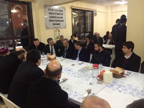 Bolu’da Belediye Başkanlığı ve Valilik nezdinde gerçekleştirilecek programlarını, Muhittin Palazoğlu’nun daveti ile iptal eden Davutoğlu, akşam namazını Hayreddin-i Tokadi Hazretleri Türbesi Camii’nde kıldıktan sonra Hayreddin-i Tokadi Hazretleri, Sürmeli Muhiddin Hazretleri, Ahmet Palazoğlu ve Yekta Palazoğlu’nun kabirlerini ziyaret etti. Daha sonra Tokadi Hayreddin – Sürmeli Muhiddin – Ahmet Bolevi Tasavvuf Yolu Derneği, Tokhayder’in hayratı olan ve 24 saat ziyaretçilere ücretsiz yemek sunan Aşevi’nde beraberindeki heyetle birlikte yemeğe katıldı. Davutoğlu’nun sağında Bülent Arınç, solunda ise Muhittin Palazoğlu oturdu.