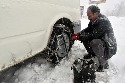 D-100 karayolunun Bolu Dağı geçişi ve D-655 Düzce-Zonguldak Batı Karadeniz Bağlantı yolu Kabalak mevkisinde çalışan ekipler, araçların zincirsiz geçmesine izin vermiyor.