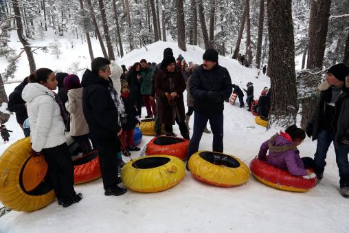 Abant'a gelen tatilciler, vakitlerini kızakla kayarak, at ve faytonla göl turu atarak geçiriyor.