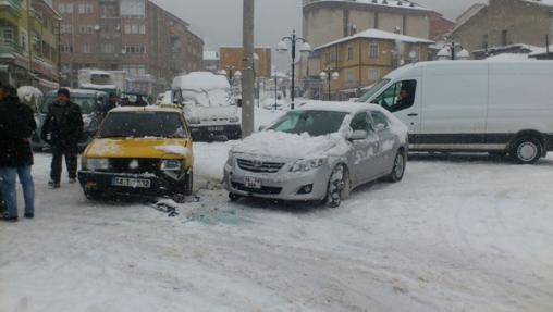 Edinilen bilgiye göre; Evinde rahatsızlanan kişiyi hastaneye yetiştirmeye çalışan Can Taksi Durağı çalışanlarından Kenan Ötürk’e ait 14 T 3532 plakalı araç Cumhuriyet Caddesi’nde seyir halindeyken ara sokaktan gelen Mehmet Lüleci’ye ait 14 KG 340 plakalı araçla çarpıştı. Karda duramayınca çarpmanın meydana geldiği kazada herhangi can kaybı yaşanmazken maddi hasar meydana geldi. Olay yerine gelen trafik polisleri, tutanak tuttuktan sonra araçlar olay yerinden ayrıldı.