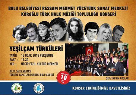 Aşık diğer taraftan Dernek yararına 15 Ocak Perşembe günü saat 19.30’da BSM Köroğlu Türk Halk Müziği Topluluğu tarafından düzenlenecek olan Yeşilçam Türküleri Konseri’ne Bolu halkını davet etti. Aşık 10 TL’den satılan biletlerin Türkiye Sakatlar Derneği Bolu Şubesi’nden temin edilebileceğini de sözlerine ekledi.