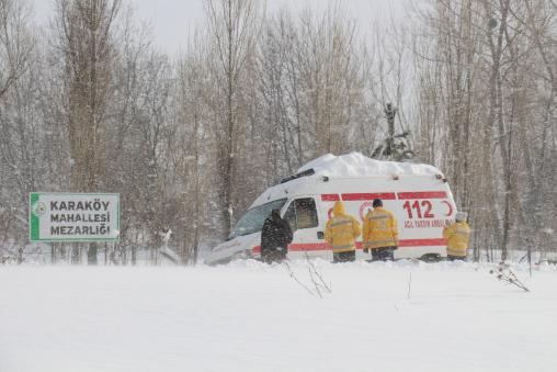 Bolu İl Sağlık Müdürlüğü’ne ait bir ambulans dün saat 14.00 sıralarında Karaköy mevkiinde kayarak yoldan çıktı. Kara saplanan ambulanstaki sağlık görevlileri kazayı yara almadan atlattı. Ambulans şoförünün yardım anonsu üzerine bölgeye Ulusal Medikal Kurtarma Ekipleri (UMKE) yetişti. Ekipler, kara saplanan ambulansı halatlarla bağladıkları çekici yardımıyla kurtarmayı başardı. Yaklaşık 20 dakika süren kurtarma çalışmaları sonrası ambulans sağlık görevlileriyle birlikte bölgeden ayrıldı.