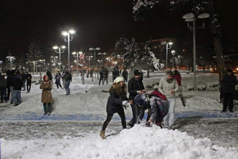 Bir grup gencin sanal ortamdan başlattığı “1. Kardan Adam Festivali” adı altındaki etkinlik de vatandaşları dün gece Kardelen Meydanı’nda bir araya topladı. Bolu’da -17 derece soğuğa rağmen gençler, yaşlılar, çocuklar geç saatlere kadar meydandaki karlarda yuvarlandı, kartopu savaşı yaptı. Karların sıkıştırılıp toparlanamamasından dolayı kardan adam yapılamadı ama Bolu Kardelen Meydanında toplanan halkın, karın keyfini doyasıya çıkarması da güzel ve renkli görüntülere sahne oldu.