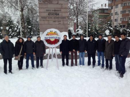 Bolu Ziraat Mühendisleri Odası üyelerinin katılımıyla gerçekleştirilen tören, Atatürk Anıtı’na çelenk sunumu ile başladı. Saygı duruşunun ardından bir açıklama yapan Bolu Ziraat Mühendisleri Odası İl Başkanı Niyazi Kalfa, ülkemizdeki tarımsal öğretimin başlangıcını anlattı. Kalfa, açıklamasında şu ifadelere yer verdi; “Ülkemizde sistemli ve belirli bir disiplin içinde yürütülen ilk tarımsal eğitim-öğretim faaliyeti 169 yıl önce 10 Ocak 1846 yılında, İstanbul’un bugünkü adıyla Yeşilköy semtinde bulunan Ayamama çiftliğinde kurulan Ziraat Mektebi ile başlamıştır. Daha sonra bugünkü anlamıyla yüksek öğrenim sayılabilecek düzeyde olan 1891 tarihinde Bursa Ziraat Mektebi ile 1893 tarihinde de İstanbul Halkalı Ziraat Mektebi açılmıştır. Cumhuriyetin ilk yıllarına kadar faaliyetine devam eden bu okullardan Halkalı Ziraat mektebinden çıkan bir çok genç 1923 yılından itibaren yurt dışına özellikle de Almanya’ya öğretim ve modern araştırma yöntemlerini öğrenmek için gönderilmiştir.1927 yılında Almanya’ya eğitim öğretime giden gençlerle birlikte Almanya’dan gelen hocaların oluşturduğu bilim kurulu, ülkemizin tarımsal durumunu incelemiş ve bir çok önerinin yanında modern bir Ziraat yüksek öğretiminin açılmasını da önermiştir. Bu öneri üzerine Türkiye Cumhuriyeti 1927 yılında bir yasa çıkartarak çağdaş anlamda tarımsal yüksek öğretimin temellerini atmıştır. Daha sonra Ankara’da Yüksek Ziraat Enstitüsü kurulmuş ve kurumun çok modern binaları ve laboratuarları kısa zamanda tamamlanmış ve çağdaş anlamda Türkiye’nin ilk yüksek öğretim kurulu olarak 30 Ekim 1933 yılında açılmıştır. Açılışı yapılan bu yüksek okulda ordinaryüs unvanlı 23 Alman bilim adamı ile Cumhuriyetin ilk yıllarında yurt dışına öğretim için gönderilen 40 Türk bilim adamı da görev yapmışlardır.1946 Yılında çıkarılan üniversiteler yasası ve 1948 yılında çıkarılan Üniversiteler ek yasası ile Yüksek Ziraat Enstitüsü, şimdiki Ankara Üniversitesi Ziraat Fakültesi haline gelmiştir. Daha sonra 1955 yılında Ege,1957 yılında Atatürk,1967 yılında Çukurova Ziraat Fakülteleri açılmış ve bunları bugün sayıları 35’i bulan diğer Ziraat Fakültelerinin açılması izlemiştir. Günümüzde bu fakültelerin 4000 öğrenci kontenjanı vardır.”