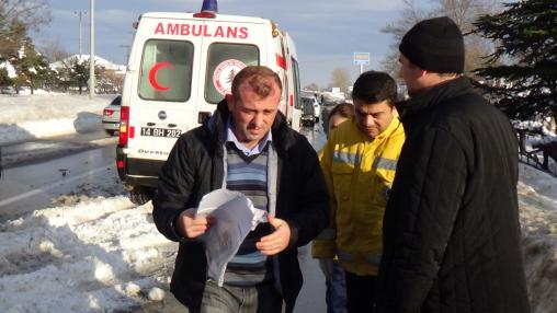 Edinilen bilgiye göre, kaza saat 15.10’da D-100 karayolu Kasaplar köyü girişinde meydana geldi. Yücel Onur Yıldız yönetimindeki 14 EJ 437 plakalı cip karayolları ekiplerinin yolda kar temizleme çalışması yaptığı sırada yolda biriken kar kütlesine girerek takla attı. Otomobilde bulunan sürücünün eşi Rabia Nur Yıldız ve kızı emniyet kemeri takılı olduğu için kazadan yara almadan kurtuldu. Sürücü Yücel Onur Yıldız ise kolundan hafif şekilde yaralandı. Kaza sonrası büyük şok yaşayan anne Rabia Nur Yıldız kızını kucağına alarak gözyaşı döktü. Polis kazayla ilgili inceleme başlattı.