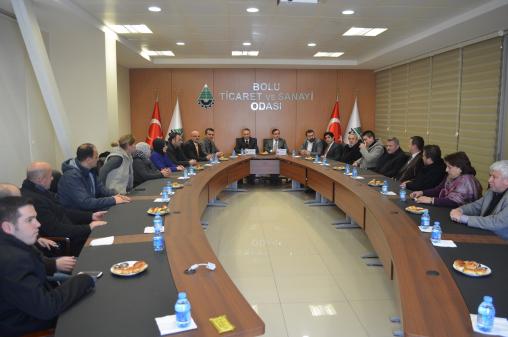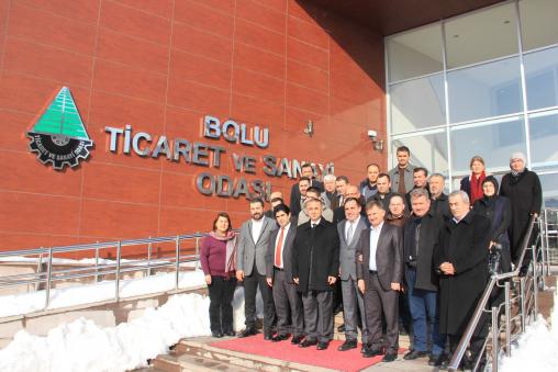 Siyasiler tarafından gerçekleştirilen ziyaretten dolayı memnuniyetini belirten Bolu Ticaret ve Sanayi Odası Yönetim Kurulu Başkanı Türker Ateş, "İş dünyasının kalbi olan odamızı ziyaret etmeniz, iş dünyasında nasıl baktığınızı gösterir. Türkiye'nin 2023 hedefleri var. Bolu'nun da 2023 hedefleri var. Bu hedeflere ulaşmak için iş dünyasının siyasi irade ile birlikte hareket etme zorunluluğu vardır. Bu konuda daha önceki dönemlerde bizlere çok büyük destekler verdiniz, sağ olun. Bundan sonrada yanımızda olacağınızı biliyorum. " dedi. Devamında "Bolu'nun sorunları hepimizin sorunu" diyen BTSO Başkanı Ateş, "Bolu'nun sorunları, iş dünyasının sorunları hepimizin sorunu. Çözüm noktasında sizlerin ise ivedilikle ve kararlılıkla hareket etmesi gerekmektedir. Bunu da çok güzel yapıyorsunuz. Ben çalışmalarınızdan dolayı hepinize şükranlarımı sunuyorum. Bu nezaket ziyaretinizden dolayı da tekrar teşekkür ediyoruz." şeklinde konuştu.