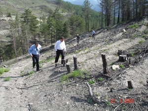 Orman Bölge Müdürü Sırrı Köstereli, beraberinde Orman Kadastro Koordinatörü ve Mudurnu Orman İşletme Müdürü ile yapılan fidanlama ve tohumlama çalışmalarının sonuçlarını yerinde görmek amacıyla yanan sahada incelemelerde bulundu.