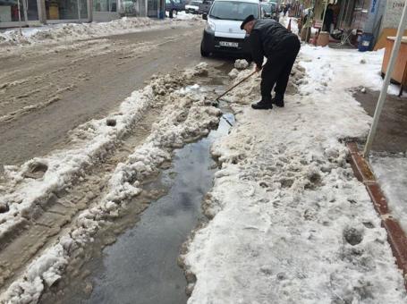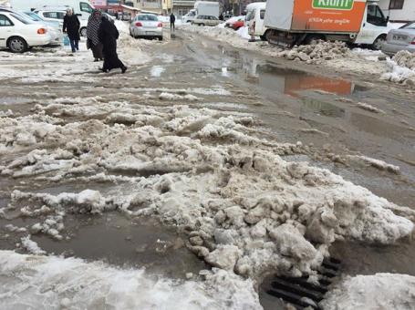 Eriyen kar suları, yolları göle çevirirken, vatandaş kadar mağdur olan esnafta belediye yetkililerinden bir çare bekliyor.