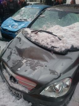 Alınan bilgiye göre, Tabaklar Mahallesi Hattat Emin Barın Caddesi'nde park halinde bulunan Savaş Top'a ait 14 BR 307, Murat Demir'e ait 14 FB 672 ve 14 EK 421 plakalı otomobillerin üzerine 7 katlı binanın çatısından kar kütlesi düştü.