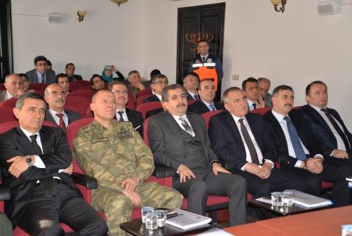 Valilik Yedigöller Toplantı Salonu'nda düzenlenen ve Bolu Valisi Ahmet Zahteroğulları başkanlığındaki toplantıya; Garnizon Komutanı Tuğgeneral İsmail Güneşir, Belediye Başkanı Alaaddin Yılmaz, Vali Yardımcısı H.Necdet Özeroğlu İl Jandarma Komutanı Jandarma Albay Türker Yılmaz, İl Emniyet Müdürü Mustafa Kızılkaya, İlçe Kaymakamları ve İl Afet Müdahale Planı'nda görevleri bulunan daire müdürleri ve yetkilileri katıldı.