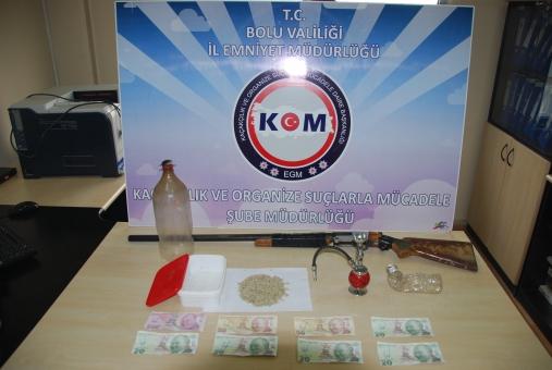 İl Emniyet Müdürlüğü Kaçakçılık ve Organize Suçlarla Mücadele Şube Müdürlüğü E.Y. adlı bir şahsın evinde arama yaptı. Evde yapılan aramada 5 adet sahte 20 TL, 2 adet sahte 50 TL, 1 adet sahte 200 TL banknot ile ruhsatsız 16 calibre tek kırma tabir edilen tüfek ele geçirildi.