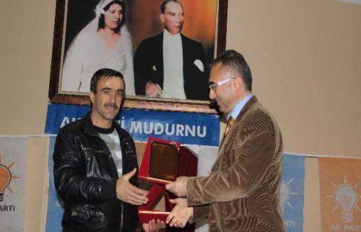 Programın ardından Coşkunyürek, seçimlerde yüksek oy çıkan köylerin muhtarlarına plaket verdi.