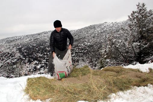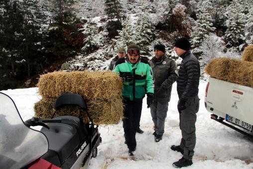 Kar kalınlığının bir metreyi aştığı bölgelere kar motorları ve arazi araçlarıyla ulaşan ekipler, belirli noktalara geyik, karaca, yılkı atları, akbabalar ve yabani kuşlar için saman, yem ve buğday koydu.