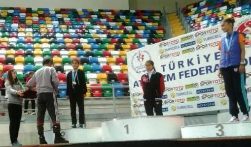 Türkiye Atletizm Federasyonu faaliyet takviminde bulunan Turkcell Yıldızlar Salon Atletizm Şampiyonası ve 16 Yaş Altı A Kategorisi Salon Atletizm Şampiyonası önceki gün İstanbul Aslı Çakır Atletizm Salonunda yapıldı. Rekor katılımla gerçekleşen organizasyonda 60 farklı ilden 1193 sporcu ter döktü. İlimizi temsil eden sporcularımızdan Elif Akdağ 800 m de 150 sporcu arasında Türkiye 2. liğini elde ederek gümüş madalya kazandı. Gülle atmada Semra Kök Türkiye 3.'sü olarak bronz madalya kazanırken, uzun atlamada ilimiz temsil eden sporcumuz Gökdeniz Tosunoğlu Türkiye 5.liğini elde etti. Organizasyonda elde ettikleri başarılı sonuçlar neticesinde, sporcularımız Elif Akdağ, Semra Kök ve Gökdeniz Tosunoğlu ile antrenörleri, İstanbul'da düzenlenen ve 8 Şubat 2015 e kadar devam edecek, Turkcell 2020 Olimpik Hazırlık Kampına davet edilerek ilimizi gururlandırdılar. Sporcularımızı ve antrenörlerimizi kutluyoruz.