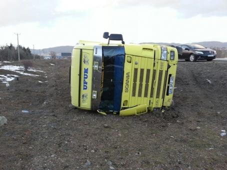 Diğer yandan Ankara’dan Gerede istikametine gelen 06 DPZ 04 plakalı TIR, D-100 üzerinde seyir halindeyken şiddetli lodosa dayanamadı ve yan yattı. Emniyet ekiplerinin yol üzerinde aldığı önlemlerin ardından devrilen TIR yoldan kaldırıldı.