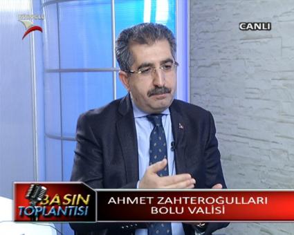 Bolu Valisi Ahmet Zahteroğulları Köroğlu Televizyonu'nda her hafta Pazartesi günleri Mehmet Ali Atalay moderatörlüğünde, Köroğlu Televizyonu Haber Müdürü Rasim Özdemir ile birlikte yaptığı Basın toplantısı programına katıldı. Mehmet Ali Atalay ile Rasim Özdemir’in sorularını cevaplayan Vali Zahteroğulları programda Bolu'nun turizminden yeni yapılacak sanayi sitesine kadar bir çok konuda açıklamalarda bulundu. Programda yer alan satır başları ise şu şekildeydi: