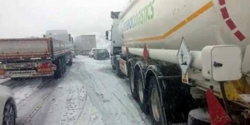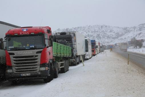 Yolda mahsur kalan araç sürücüleri, yaklaşık 3 saattir beklediklerini ve yolun kar yağışı nedeniyle sürekli ulaşıma kapandığını öne sürdü.