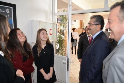 Ziyarette Okul Aile Birliği ile bir süre sohbet eden Vali Zahteroğullarıile Belediye Başkanı Yılmaz ve beraberindekiler daha sonra ise Okul Müdürü Ali İhsan Duman ile birlikte okulda görev yapan öğretmenlerle bir araya geldiler.