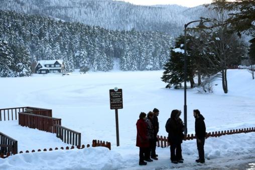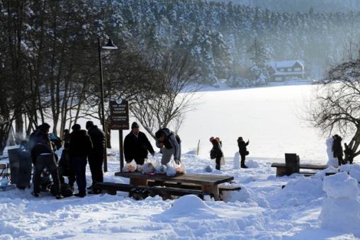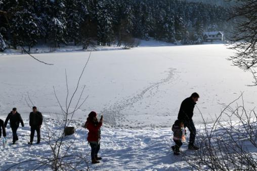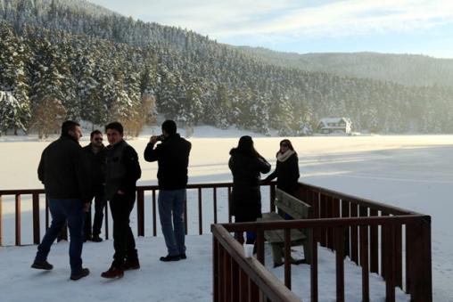 Bölgeye gelen yerli ve yabancı ziyaretçiler, buz tutan gölün çevresinde yürüyerek, kartopu oynayarak ve piknik yaparak vakit geçiriyor.
