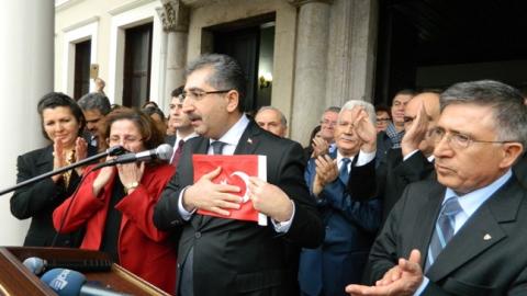 Veda konuşmasını alkışlarla tamamlayan Ahmet Zahteroğulları duygusal anlar yaşadı.