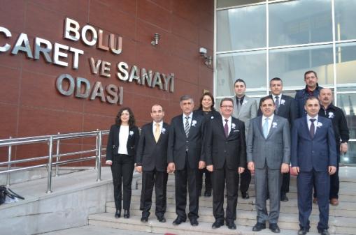 Ziyaretlerinden dolayı Defterdar Zekai Dede ve beraberindekilere teşekkür eden TSO Başkanı Türker Ateş, “Bolu iş dünyası, her zaman devletimize karşı olan sorumluluklarının bilincinde ve bu sorumlulukları en iyi biçimde ve azami ölçüde yerine getirme gayreti içinde olmuştur. Her birimiz vergilendirilmiş kazancın kutsallığı düsturu ile yola çıkmış kişileriz. Odamız çatısı altında toplanan 3.500 ticari işletmemiz, İlimiz ekonomisinin omurgasını oluşturmaktadır. İş dünyamız bu zorlu iktisadi ve ticari yaşantı içinde rekabet edebildikçe var olmaya ve kazanmaya devam edecek; kazandıkça da ürettiği vergiler sayesinde İlimiz ve ülkemiz de kazanacaktır. Bolu iş dünyasının çatı kuruluşu ve tüccar-sanayicilerimizin yasal temsilcileri olarak Odamızın da gerek Defterdarlığımızla, gerekse Vergi Dairesi Müdürlüğümüz ile kurumsal ilişkileri son derece verimli biçimde devam ediyor. Bundan sonra da böyle devam edecek” şeklinde konuştu.