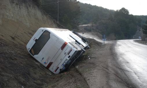 Edinilen bilgiye göre, kaza, Mudurnu Nallıhan karayolunda meydana geldi. 27 yolcusu bulunan Mustafa Kılıçaslan yönetimindeki 07 AEG 77 plakalı otobüs, Tımaraktaş köyü mevkiinde sürücüsünün direksiyon hakimiyetini kaybetmesi sonrasında şarampole yuvarlandı. Kazada otobüste bulunan yolculardan Tülay Unutkan Savaş, Aleyna Taş Nejla Ata, İbrahim Taş, Ferinaz Taş, Nazhanım Taş, Emine Sevgi ve Hüseyin Ekici yaralandı. Yaralılar Mudurnu Devlet Hastanesi’nde tedavi altına alınırken, sağlık durumlarının iyi olduğu ifade edildi.