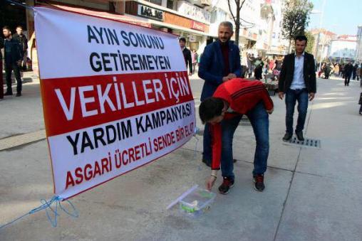BBP Bolu Milletvekili aday adayı Alan, İzzet Baysal Caddesi'nde "Ayın sonunu getiremeyen vekiller için yardım kampanyası. Asgari ücretli sende bir el at" yazılı pankart açıp milletvekilleri için para toplayarak Bakan Güllüce'nin açıklamalarını tepki gösterdi. Vatandaşların meraklı bakışları arasında Bakan’ın açıklamalarını protesto eden Alan, yere koyduğu kutuya vatandaşlar tarafından para atıldı.