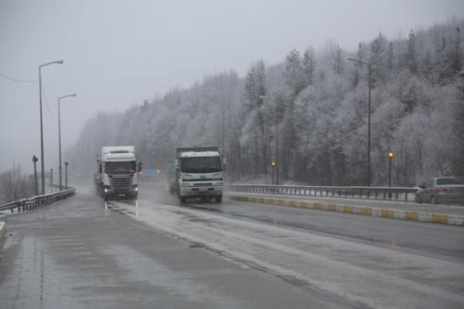 D-100 karayolunun Bolu Dağı kesiminde gece başlayan sağanak, yerini sabah saatlerinden itibaren kar yağışına bıraktı.