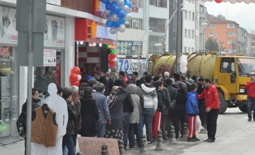 Bedava dönerden almak isteyen vatandaşlar adeta bir birleriyle yarıştı. İzzet Baysal Caddesi üzerinde açılış nedeni ile ikram edilen bedava döner izdihama neden olurken, kuyrukta bekleyen çocuklar ve yaşlılar zor anlar yaşadı. Firma yetkilisi, “250 kilo eti halkımıza bedava dağıtıyoruz. Hem tanıtım amaçlı hem de halkımızın lezzetimizi tanıması için bedava döner dağıtıyoruz. Türkiye’de Bolu’da dâhil olmak üzere 75 tane şubemiz bulunmaktadır” dedi.