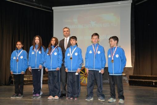 10-A sınıfı öğrencisi Merve Altun 'Annesinden Şehidine Mektup, okul öğrencisi Ayşe Efe ise 'Hazin Bir Sarıkamış' isimli şiirini okudu. 'Vatan Uğruna' adlı tiyatro oyunu gösterisinin ardından 18 Mart Kupası Atletizm dalında bayan ve erkeklerde dereceye girenlerin ödülleri Bolu Valisi Aydın Baruş tarafından verildi.