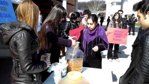 AİBÜ öğrencileri, şehitleri Çanakkale Savaşı menüsüyle andı. Cephede savaşırken günlerce yiyecek bir şey bulamayan Türk askerinin menüsü üzüm hoşafını Gölköy Kampüsü’nde bulunan Aktivite Merkezi önünde dağıtan üniversitenin topluluk öğrencileri hem duygulandı, hem duygulandırdı.
