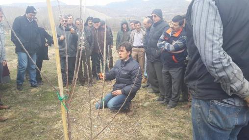 Isparta Eğirdir Meyvecilik Entitüsü uzmanları tarafından verilen meyvecilik semineri sonrasında Bolu Bağışçılar Vakfı Elma üretimi uygulama bahçesinde budama ve meyvecilik eğitimleri elma üreticilerine uygulamalı olarak gösterildi.
