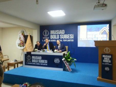 MÜSİAD Bolu Şubesi 1’inci Olağan Genel Kurulu’na; Vali Aydın Baruş, Ak Parti Bolu Milletvekili Fehmi Küpçü ve Ali Ercoşkun, Ak Parti Milletvekili Aday Adayları Fatih Metin, Hüseyin İka ve Doç. Dr. Ferudun Kaya, Ak Parti eski il başkanlarından Ömer Sayın ile iş dünyasından çok sayıda isim katıldı.