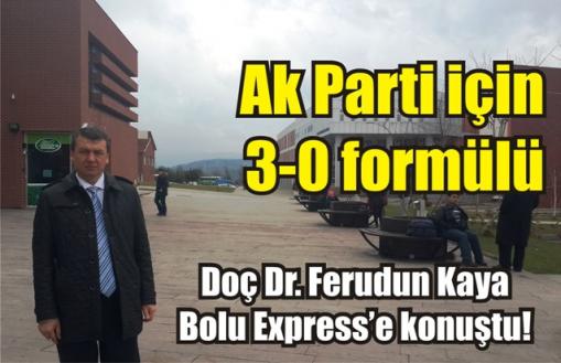 Adayların belirlenmesi için 7 Nisan 2015 tarihini bekleyen Ak Parti’de heyecanlı bekleyiş sürerken, aday adayları da kendilerini tanıtmaya devam ediyorlar. Abant İzzet Baysal Üniversitesi akademisyenlerinden Doç. Dr. Ferudun Kaya, Bolu Express Gazetesine çarpıcı açıklamalarda bulundu. Ak Parti’yi 3-0’a götürecek formülü anlatan Kaya, öncelikli hedeflerini de anlatarak, “Öncelikle bizim hedefimiz Bakan olmak değil. İlimizin sorunlarını çözmektir. İlimizde başarılı olursak, yolları yapabilirsek, hastane, adliye gibi 4 yıldır konuşulan konuları halledebilirsek bu başarı bize bakanlığın yolunu açacaktır” dedi.