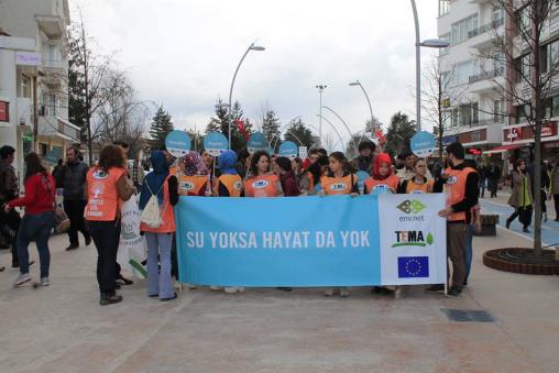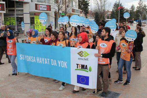 Valilik binası önünde toplanan TEMA üyeleri ellerindeki boş pet su şişelerini içerisine doldurdukları taş, çakıl ve kumları sallayarak, yürüyüş gerçekleştirdiler. TEMA adına bir konuşma yapan Gıda Mühendisliği 2.’inci sınıf öğrencisi Derya Coruk, “Günlük yaşamın her alanında kullanılan su, yaşamın bir diğer adı olarak anılmaktadır. Sağlık, gıda beslenme, yaşanabilir dengeli bir çevre gibi hayatın birçok boyutu açısından su kilit öneme sahiptir. Herkesin sağlıklı ve yeterli gıdaya ulaşma hakkı olduğu gibi aynı şekilde yeterli ve sağlıklı suya da ulaşma hakkı vardır” dedi.
