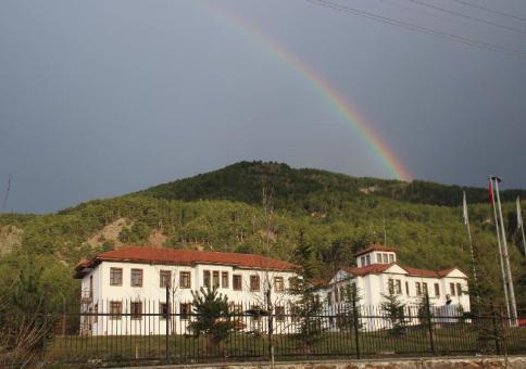 Mudurnu ilçesinin üzerinde adeta bir süs gibi duran ve rengarenk renk cümbüşü oluşturan gökkuşağı görenleri kendine hayran bıraktı.