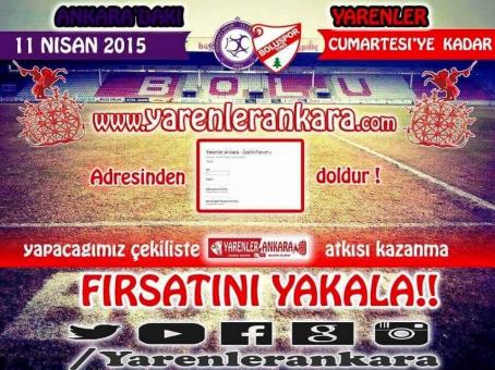 Konuyla ilgili olarak gruptan yapılan açıklamada, “Yarenler Ankara üyelik forumunu doldurun. Osmanlıspor maçı öncesi listedeki arkadaşlarımız arasında çekilecek kurayla bir arkadaşımıza Yarenler Ankara yeni atkısı hediye ediyoruz. Üyelik formunun amacı tamamen önümüzdeki organizasyonlar için iletişimi kolaylaştırmaktır. Çekiliş sadece Ankara’da yaşayan Bolulu ve Bolusporlu hemşerilerimiz için geçerlidir” ifadelerine yer verildi.