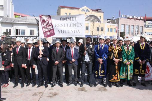 -İl Müftülüğü ve Bolu Belediyesi tarafından organize edilen etkinlik kapsamında yaklaşık 700 kişi valilik önünde toplandı. İl Müftüsü İzani Turan, Belediye Başkan Yardımcısı İhsan Ağcan ve çok sayıda sivil toplum kuruluş temsilcisinin katıldığı yürüyüşte, Orta Asya’dan gelen ve Bolu’da öğrenim gören, yerel kıyafetleriyle dikkat çektiler. Küçük yaştaki izciler de yürüyüşe renk kattı.