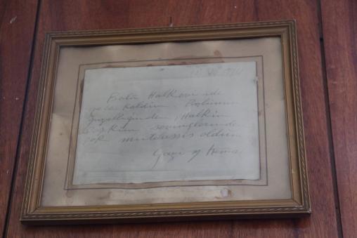 Bizzat kendi el yazısı ile, Bolu’yu övdüğü yazı Bolu İzzet Baysal Halk Eğitim Merkezi Müdürü’nün odasında süslü bir çerçeve içinde bulunuyor.